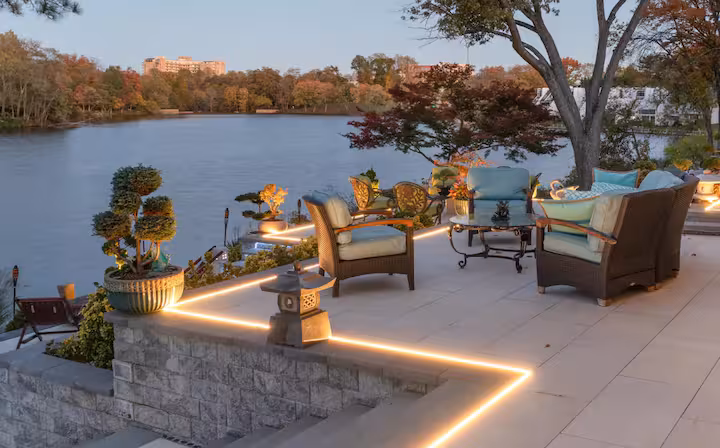✔ Private lakeside patio with water views and seating