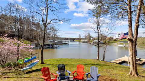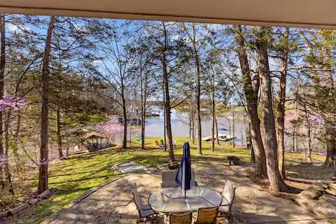 Escape to your private lakefront retreat in Hyco! This beautifully designed 3-bedroom, 3-bath farmhouse-inspired home sleeps up to 11 and offers the perfect mix of comfort and charm. Relax in the hot tub, kayak or paddleboard on the lake, and enjoy the calm of a quiet cove, conveniently located across from Bouey’s Restaurant and Marina for dining and lake fun.