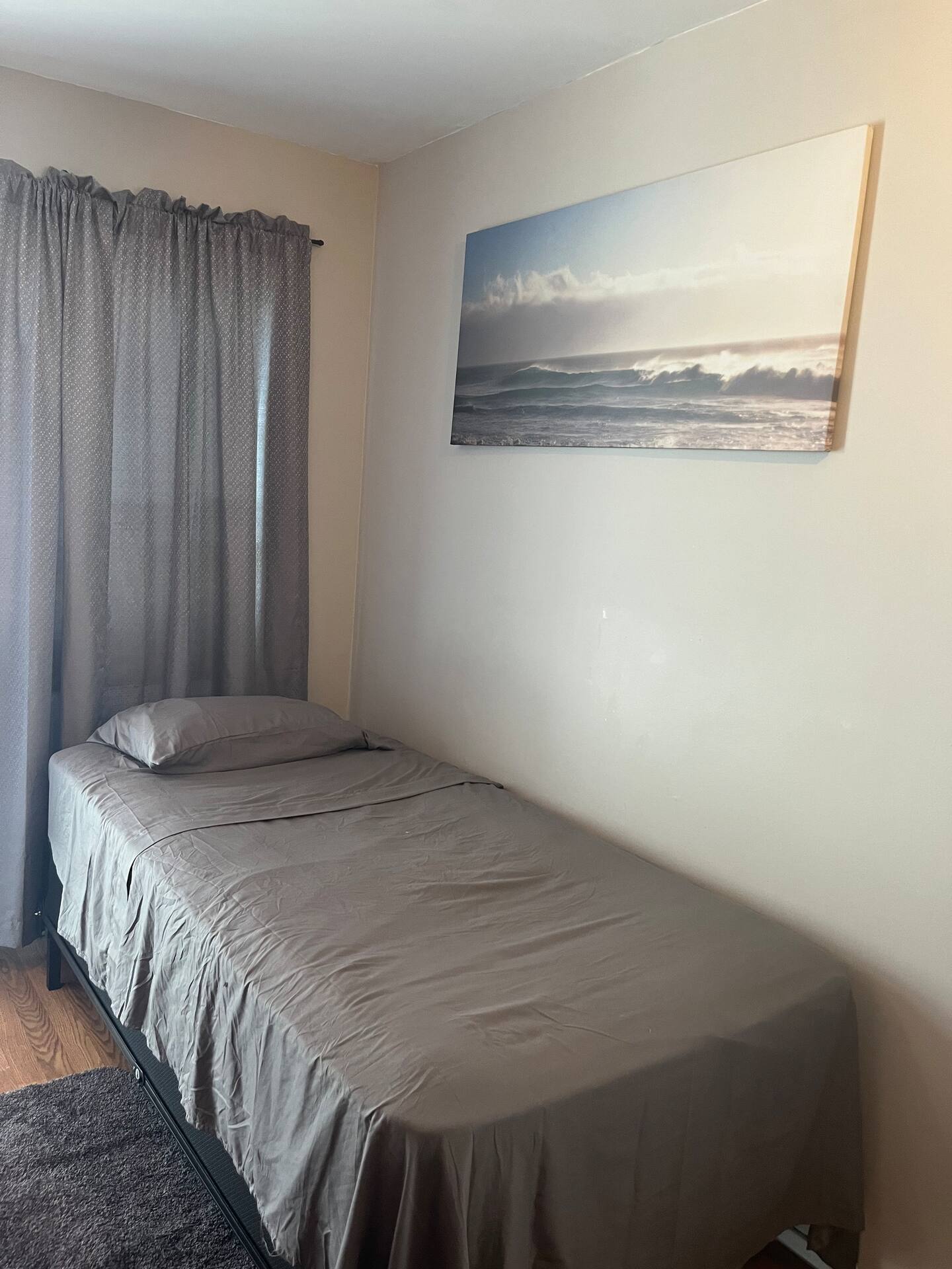 Furnished with a private entrance. Twin size bed with kitchenette & full size bathroom for one person. Close to everything. Easy access from airport and Amtrak station via public transportation.