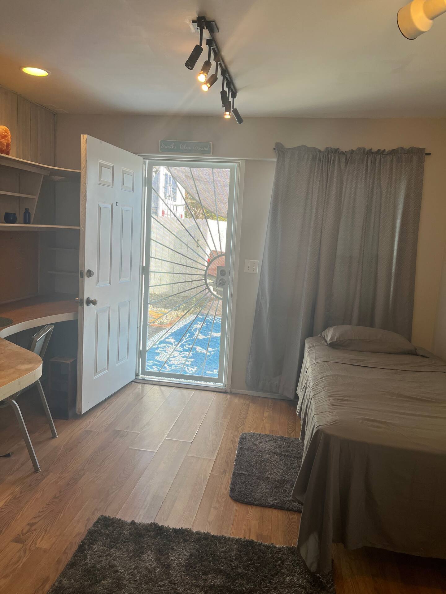 Studio that is attached to the front of the house. Private entrance and a outside patio.